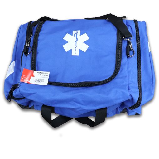 This latex free Medical Responder Trauma kit comes in a uniquely designed first responder bag which features a rubberized bottom panel, Velcro handle closures, shoulder strap, three rows of latex free elastic loops sewn into the lid, and reflective strips for added visibility. A removable padded liner with adjustable Velcro dividers can be used in any pattern to custom fit medical equipment in up to 10 padded compartments. Two generous exterior pockets with Velcro-attached removable pouches feature a clear vinyl see-through window and multiple elastic loops to help organize your equipment. The Jump Bag has a waterproof bottom.