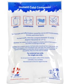 Our 6" x 9" Instant Cold Compress temporarily relieves minor pain and swelling for sprains, strains, aches, bruising, and sore joints. The Urgent First Aid™ instant cold packs are conveniently disposable with no pre-chilling required for quick, effective relief. No messy ice bags needed. Just shake, squeeze, shake again and apply for instant cool comfort and treatment of injuries.