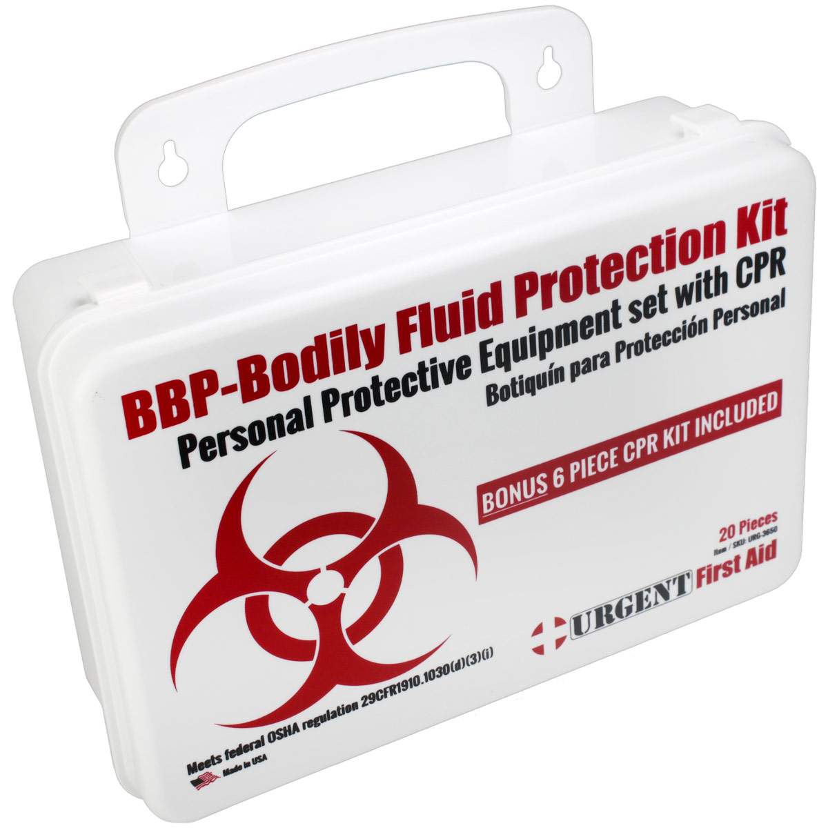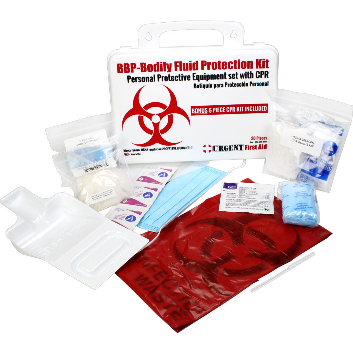 OSHA compliant Personal Protection Kit, Bloodborne Pathogen (BBP) and Other Potentially Infectious Materials (OPIM) Bodily Fluid Spill Clean Up Kit includes a Bonus 6 piece CPR Pack, Plastic Case with gasket