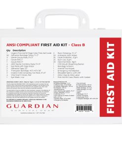 This kit meets or exceeds OSHA and ANSI 2021 Standard fill requirements, so you know you and your employees will be covered with the new ANSI 2021 requirements. This ANSI First Aid box includes the assortment and quantity of first aid supplies intended to deal with most types of injuries and sudden illnesses encountered in the workplace including: major wounds, minor wounds (cuts and abrasions), minor burns, sprains and strains, and eye injuries. The Guardian Survival Gear first aid ANSI B kit is great for workplaces ranging from offices to production facilities and warehouses of up to 50 people, and is easily wall mounted, or removed to be taken to the accident scene.