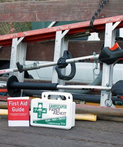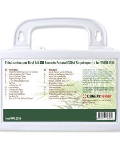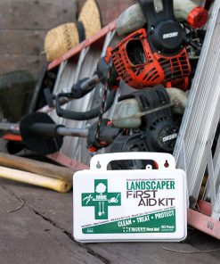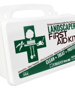 With our new, updated 103-piece, 10-unit landscaper’s first aid kit, you’re prepared to face the outdoors. Keep this kit within easy reach and treat insect stings, minor cuts, sprains and eye irritations. Products are contained in a sturdy plastic case with gasket. Designed to keep workers safe in landscaping and tree-trimming work, and a big hit with home gardeners, too!