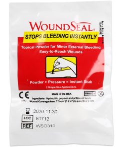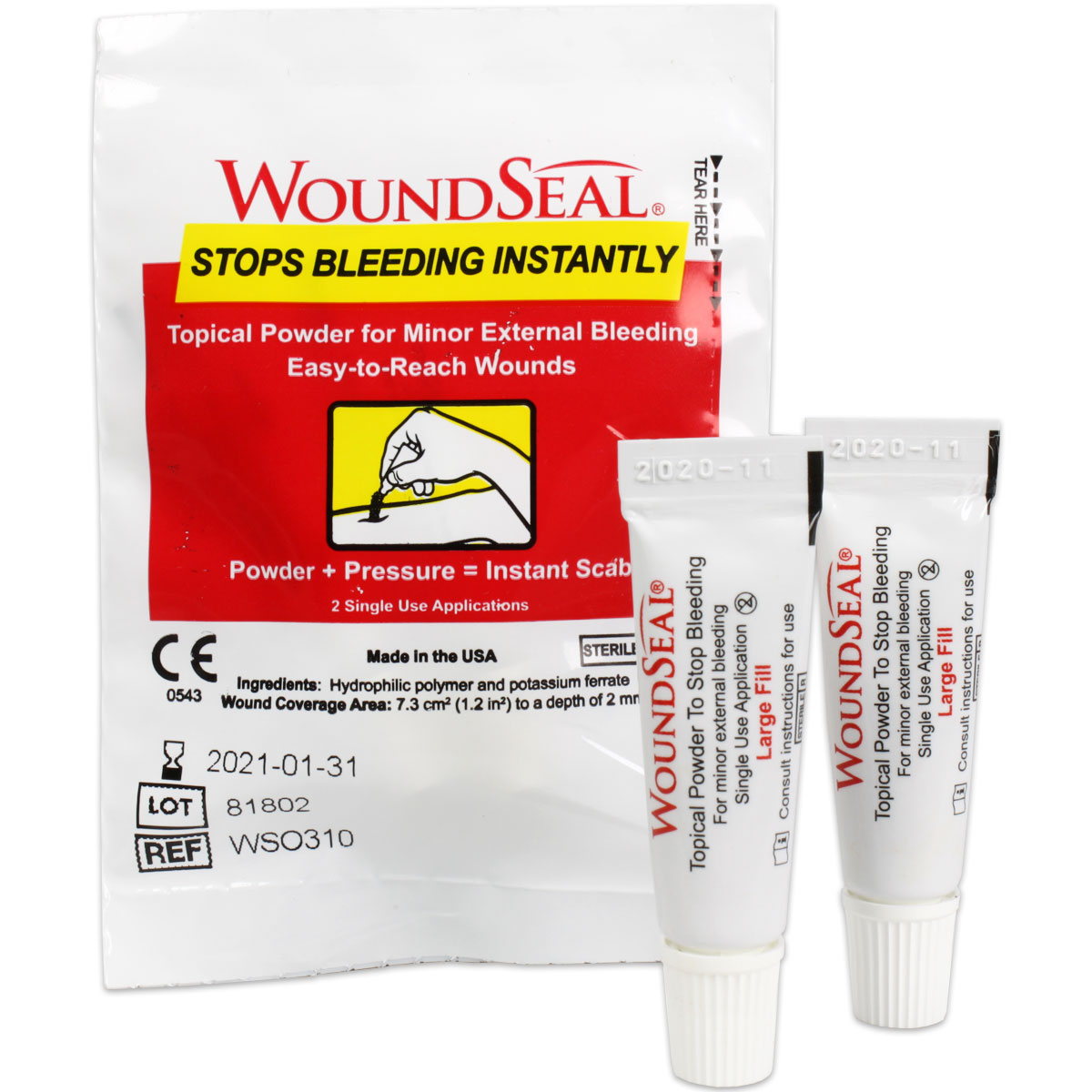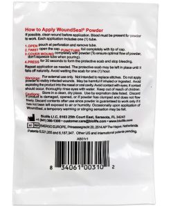 Pour Wound Seal Powder on bleeding wounds and apply pressure for 30 seconds