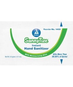 Dynarex Sannytize Instant Hand Sanitizer is an alcohol-based disinfectant that eliminates more than 99% of germs and bacteria. The liquid formula evaporates completely in just a few seconds. The sanitizer is infused with aloe to help soothe and moisturize skin.